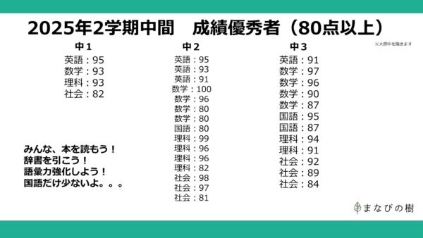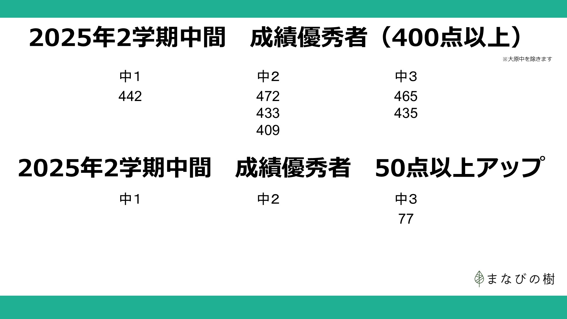 中学生の2025年度2学期の中間テストの結果が出揃いました。