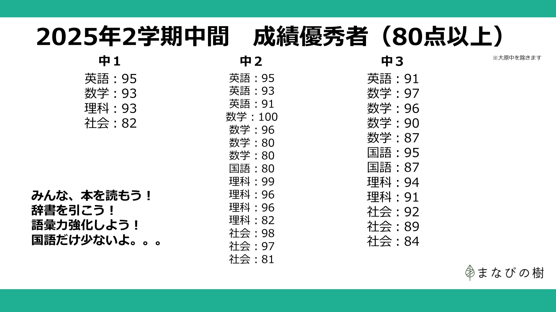 2025年2学期中間テストの結果 | 八潮市の自立型個別指導塾